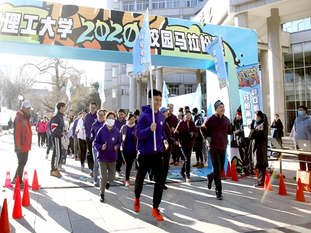 激发师生体育活动热情,丰富校园体育文化生活,团队赛共计 30个队伍近700余名教职工和研究生参赛。校长助理汪本聪鸣枪发令,伴随鸣枪声,斗志昂扬的队伍们奋力冲出起跑线,团队赛以中心教学楼为起点,经教学南路、主楼、教学北路,循环4圈,以最后一名到达的时间为该队的最后成绩,赛程约4.7公里。凛冽的寒风挡不住师生们热情的脚步,队员们相互鼓励、努力拼搏,朝着共同的荣誉与目标奋进,在一片欢呼与热闹声中,教工组机关、信息与电子学院、资产公司率先冲破终点,研究生组机电学院、机械与车辆学院、管理与经济学院队伍率先抵达终点,分别摘得教工组和研究生组一等奖。